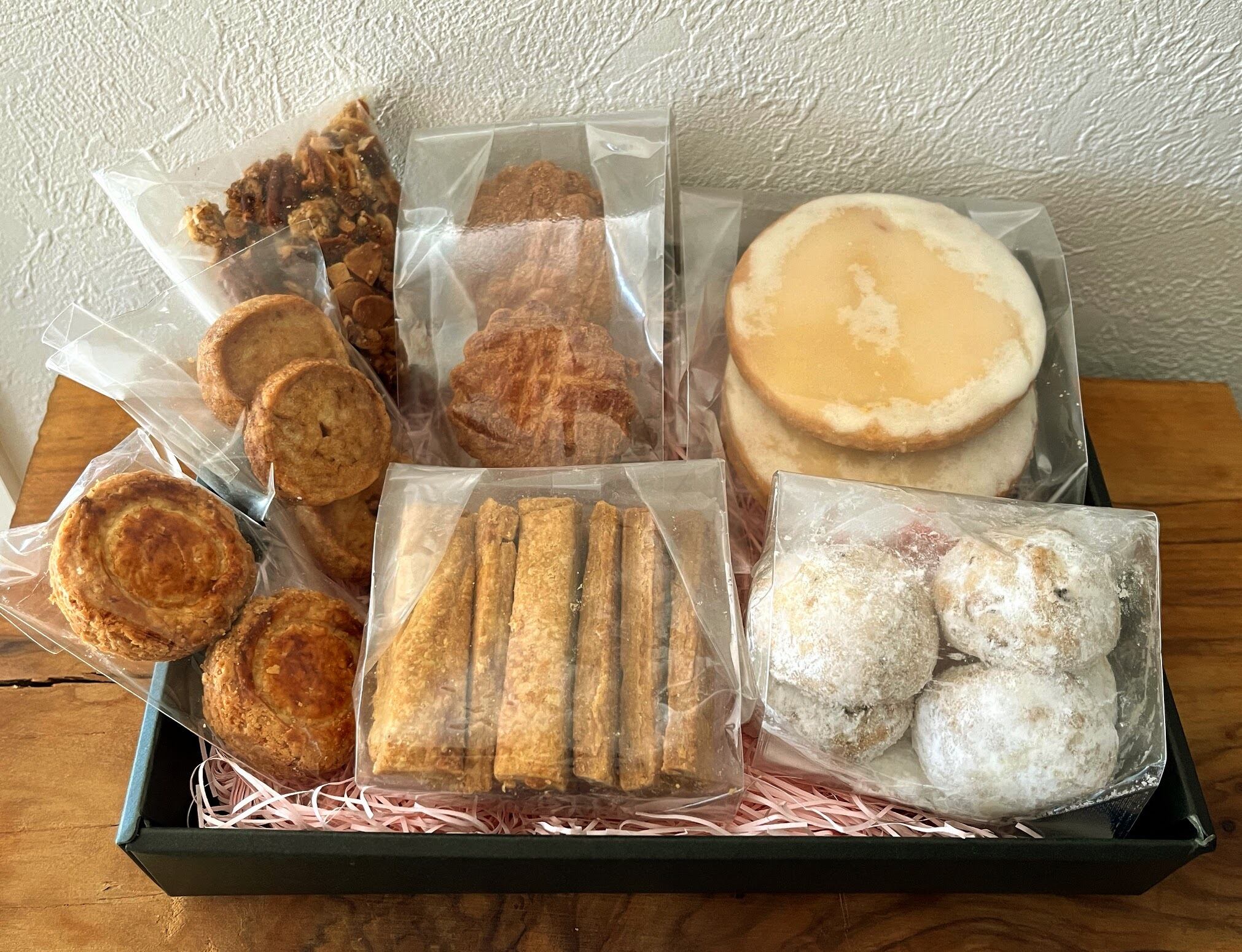 内容…定番クッキー5種+グラノーラ+おまかせ1種(写真2枚目が定番5品、3枚目はグラノーラです。)
