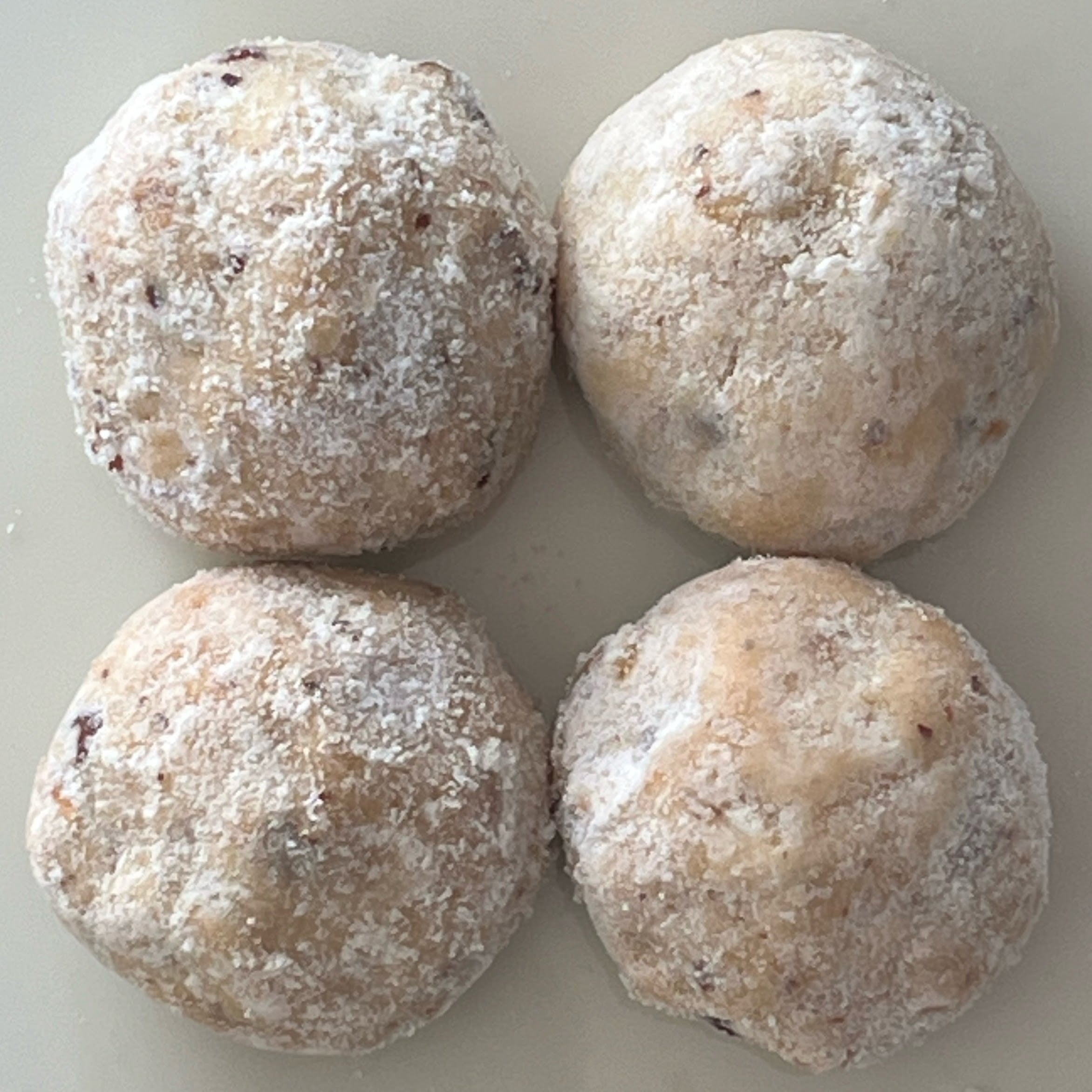 定番クッキー、スノーボールにゲランドの塩をまぶしてあまじょっぱく仕上げました。ピーカンナッツがほろりとした食感に香ばしい風味を加えます。粉はフランスのエクリチュールを使用しています。