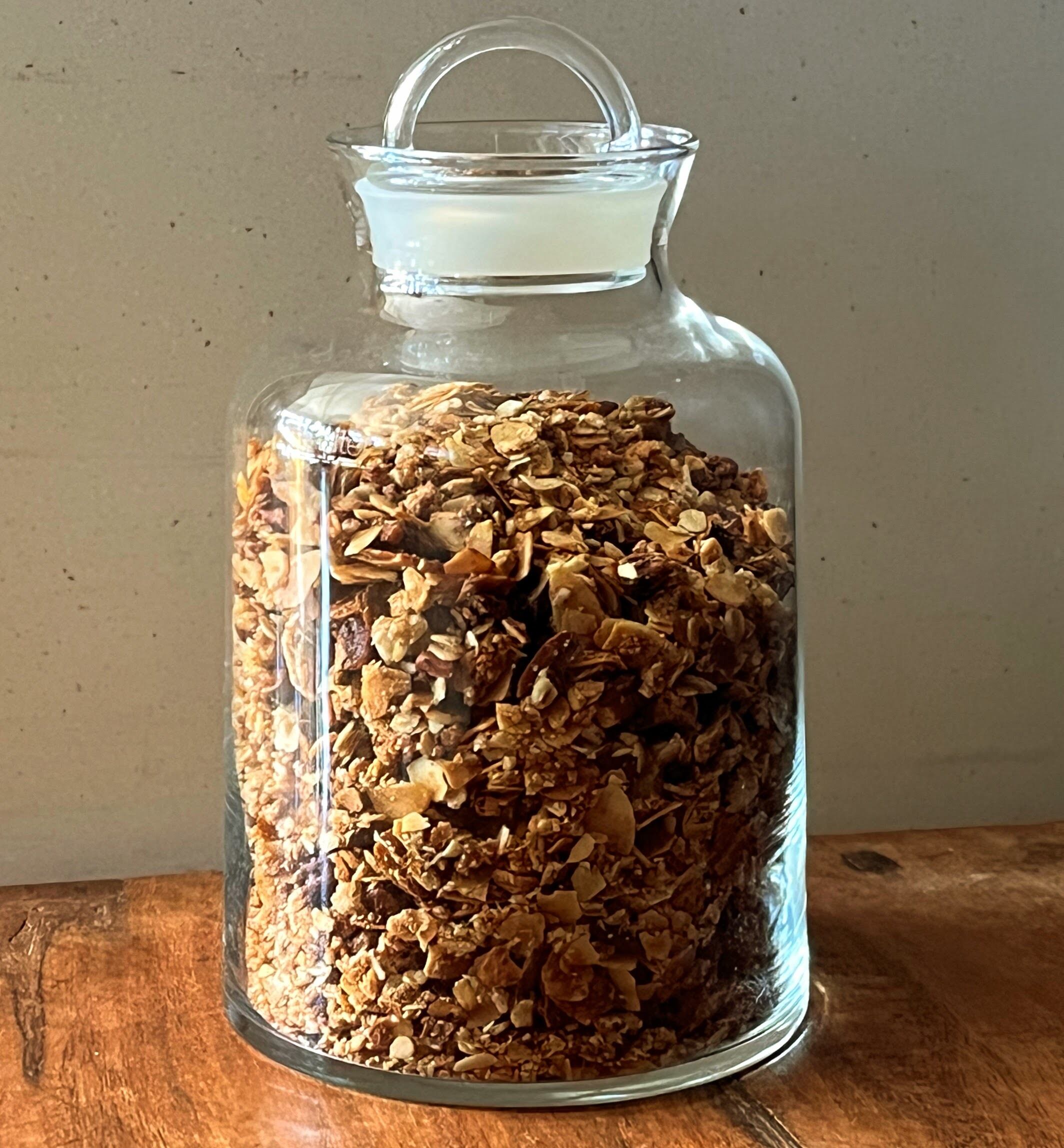 アーモンド、オートミール、ピーカンナッツを主原料にした濃厚なグラノーラ。クローブ、シナモン、カルダモンでスパイシーに仕上げました。甘みはメープルシロップで、少々の塩味はゲランドの塩で。アーモンドのクッキークランブル入りで、しっかり&どっしりとした食べ心地ですので、少量をおつまみとしてつまんだり、アイスやヨーグルト、チーズケーキなどにトッピングしてお召し上がりください。